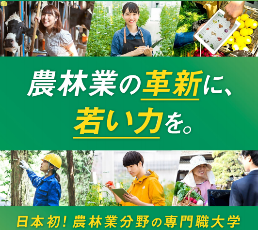 近年の農林業経営の、規模の拡大や生産技術の高度化に対応するため、静岡県立農林大学校が専門職大学に移行されることになりました。4年制の専門職大学と2年制の短期大学部の2校が同時に認可され、ニーズによって選ぶことができます。