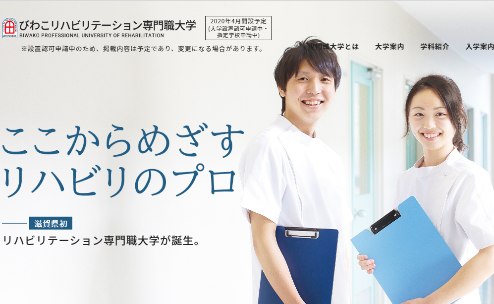 学校法人藍野大学は、理学療法士・作業療法士の養成機関である滋賀医療技術専門学校を、びわこリハビリテーション専門職大学として改組することになりました。藍野大学(大阪府茨木市)は、看護学や理学療法・作業療法・臨床工学などの学部を4年制大学として早い時期に開設した、実績のある大学です。